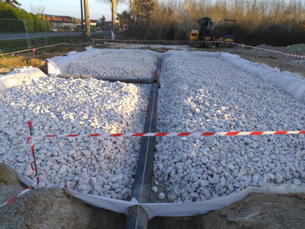 Nos équipes de maçon VRD, canalisateur, chef d’équipe et chef de chantier travaux publics assurent le dimensionnement, la conception et réalisation des tranchées, branchements, raccordements et ouvrages hydrauliques (bassins de rétention, drainage, étanchéité).